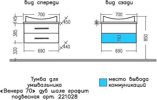 Тумба для умывальника Венера 70 дуб шале графит