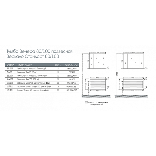 Габариты со светильником (ШхГхВ): 795x155x775 мм.