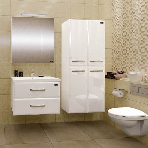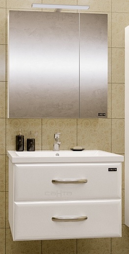 Комплектация: зеркальный шкаф, подсветка, вкладные полки, крепления.