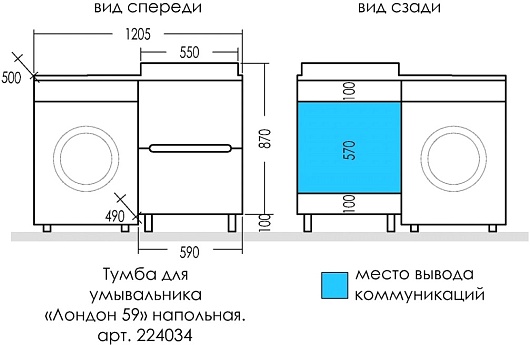 Раковина мебельная Санта Юпитер 120x50 L - арт. 900124.
