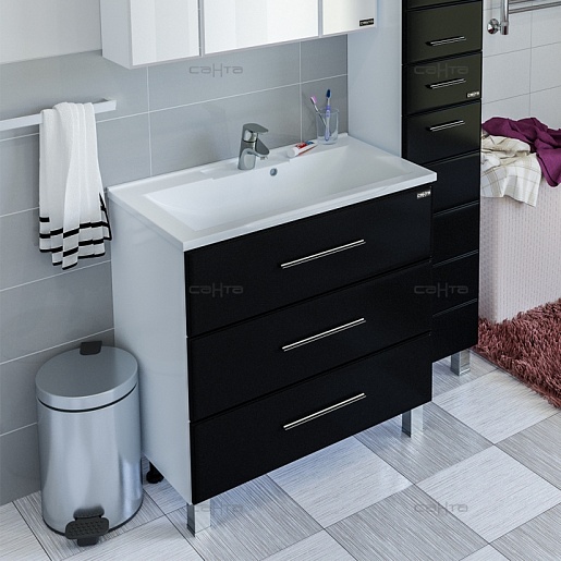 СанТа Тумба для умывальника Омега 80 напольная черная
