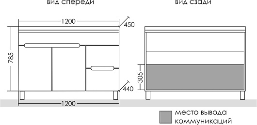 В комплекте: тумба, ножка (4 шт.), комплект креплений.