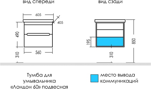 СанТа Тумба с раковиной Лондон 60 подвесная белая