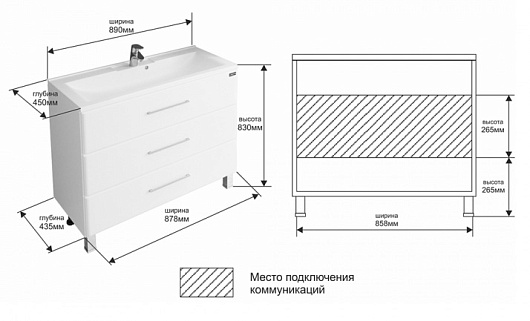 Размеры ШxГxВ: 890x450x830 мм.