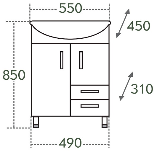 СанТа Тумба с раковиной Уют 55 с ящиками, роза
