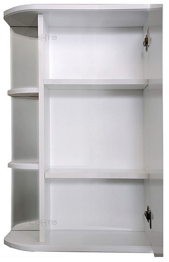 Описание: влагостойкая, зеркальная, распашная дверца (петли справа), полочки.