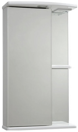 Описание: влагостойкая зеркальная распашная дверца, полочки, встроенный светильник, выключатель, розетка.