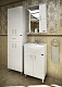 Описание: влагостойкая зеркальная распашная дверца с универсальной (лево/право) ориентацией, открытая полка.