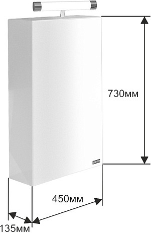 Зеркальный шкаф укомплектован светильником, розеткой и выключателем. Ориентация правая.