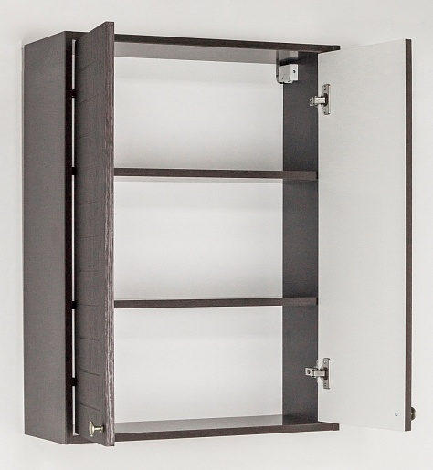 - Подвесной шкаф для ванной с распашными дверцами и внутренними полками.