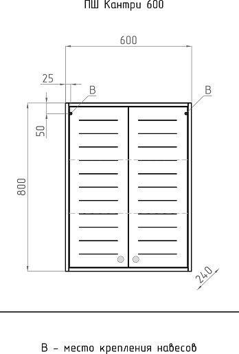- Размеры (ШхГхВ): 600х240х800 мм.