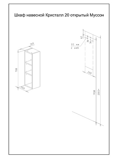 Бриклаер Шкаф навесной Кристалл 20 муссон