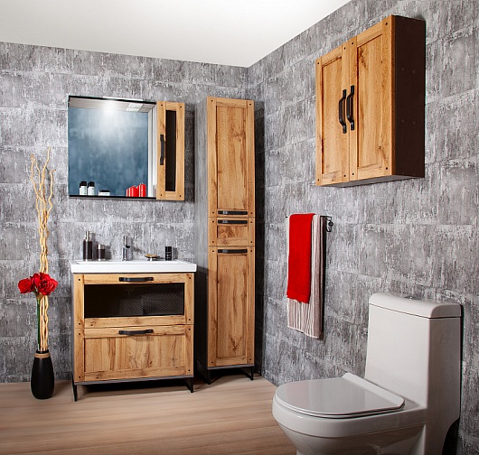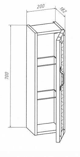 Описание: подвесной шкаф с распашной дверцей и вкладной полкой. Корпус ЛДСП, фасад МДФ, фурнитура черная матовая. Крепления в комплекте.