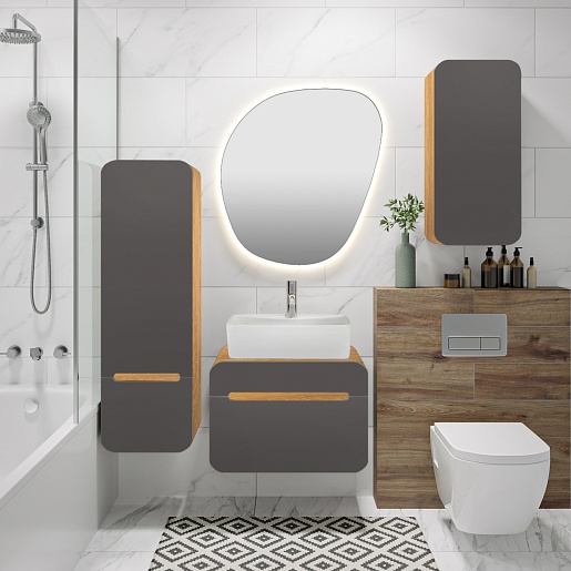 Runo Шкаф навесной Ницца 35 графит/дуб натуральный