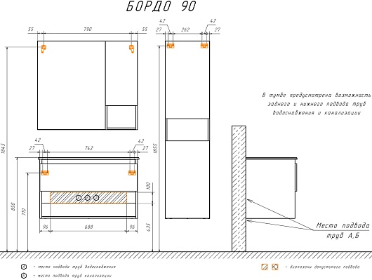 - 2 распашные дверцы, 1 открытая ниша.