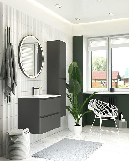 Aquanet Шкаф пенал Эмбер 35 подвесной черный матовый