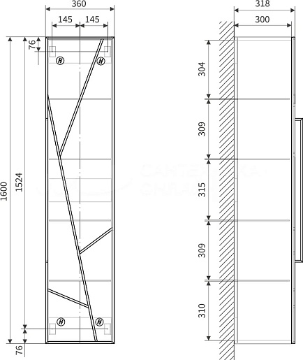 - В фасад пенал интегрирован декоративный черный металлический элемент, который так же выполняют функцию металлической ручки.