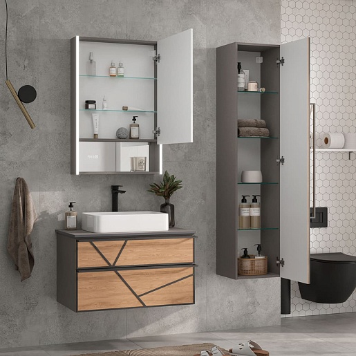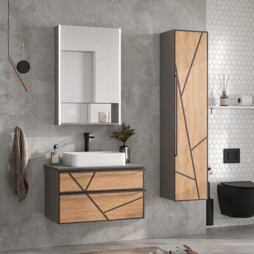 Equil Шкаф пенал Ferro 36 R подвесной лен антрацит/дуб мадера
