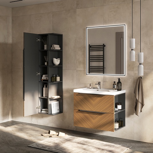 - Корпус изготовлен из влагостойкого ЛДСП в цвете графит.