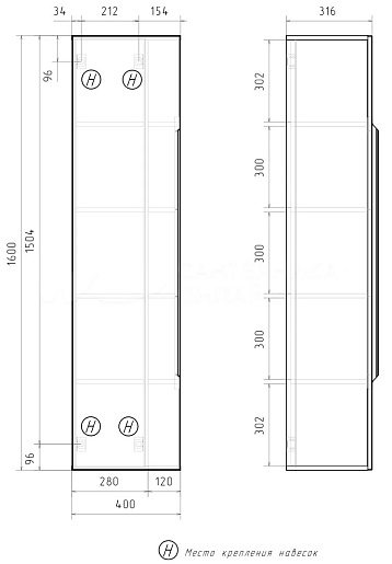 Equil Шкаф пенал Forest 40 R/L орех/графит