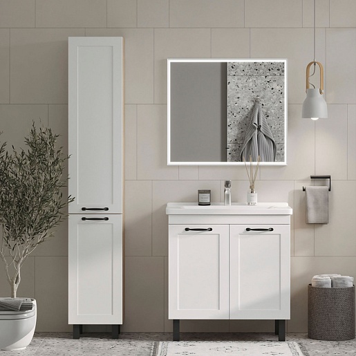 - Фасады пенала изготовлены из МДФ и облицованы матовой пленкой ПВХ с эффектом «Soft Touch».
