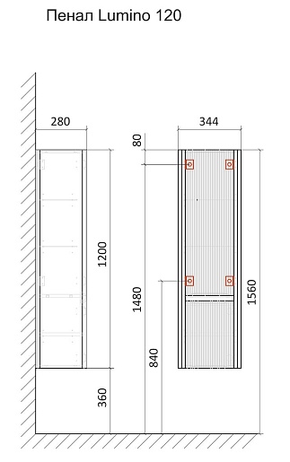 Jorno Шкаф пенал Lumino 34/120 антрацит Lum.04.120/P/A/JR