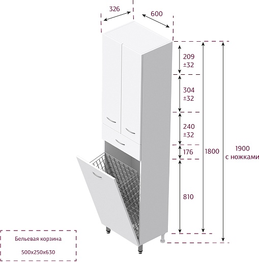 Комплектация: пенал, ножка (4 шт.), крепления.