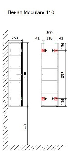 - Внутри пенала 4 стеклянные полки.