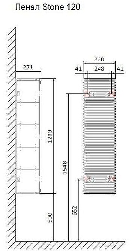 - Размеры (ШхВхГ): 330х1200х271 мм.