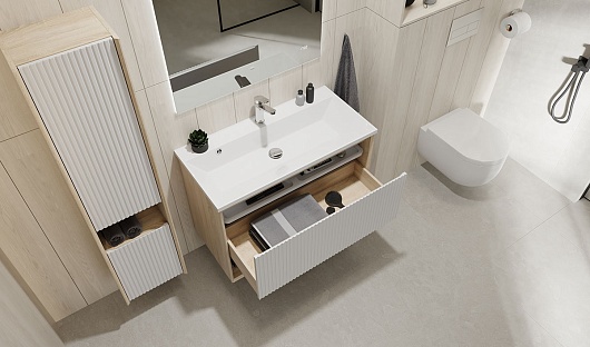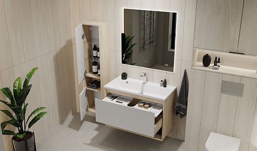 - Внутри пенал оснащен стеклянными полками, дверка пенала- доводчиком.