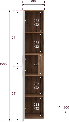 - Ориентация: универсальный (при установке верх и низ пенала можно менять местами).