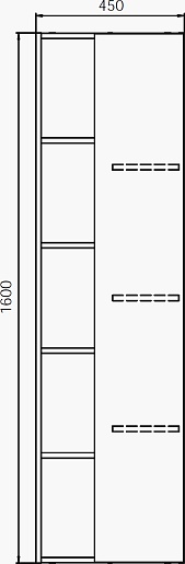 - 1 распашная дверца, 5 открытых полок.