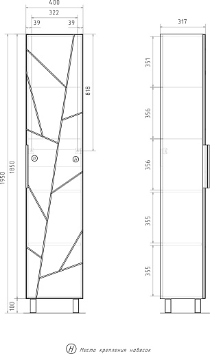 Шкаф пенал Volna Twing 40 - арт. pnTWG40-02.