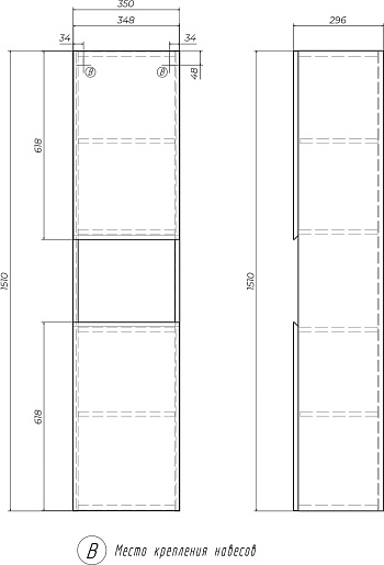 - Система хранения: 2 дверцы, 1 открытая ниша.
