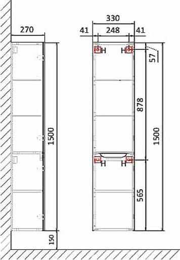 - Габариты (ШxВxГ): 33 x 150 x 27 см.