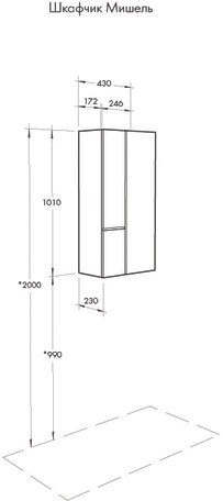 Шкаф подвесной Акватон Мишель 43 с 2 дверцами - арт. 1A243903MIX40.