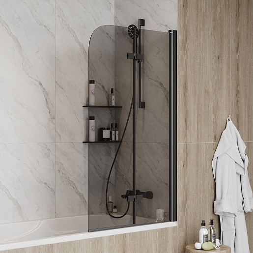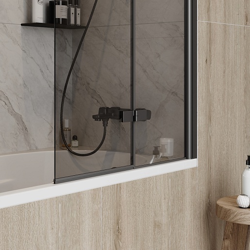 Teymi Шторка на ванну Anni 80x140 профиль черный матовый стекло тонированное
