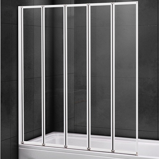 Складная шторка на ванну Cezares Relax RELAX-V-5-120/140-C-Bi 124 профиль белый стекло прозрачное - арт. RELAX-V-5-120/140-C-Bi.