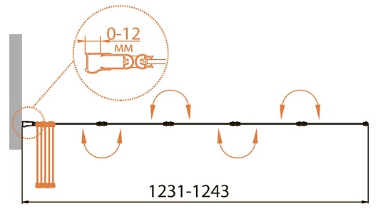 - Регулируемая ширина: от 123.1 до 124.3 см.