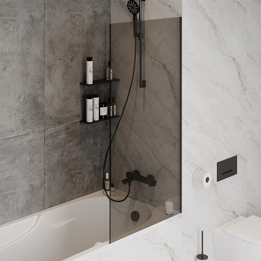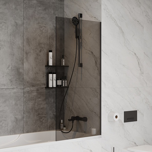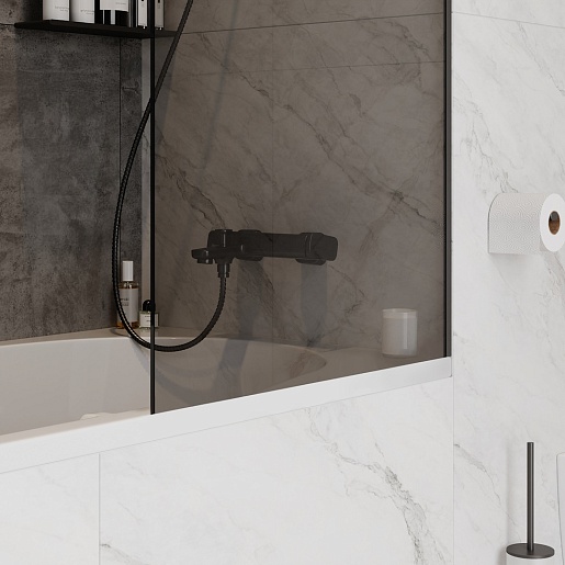 Фиксированная шторка на ванну Timo 70x140 профиль черный матовый стекло тонированное - арт. T00275.