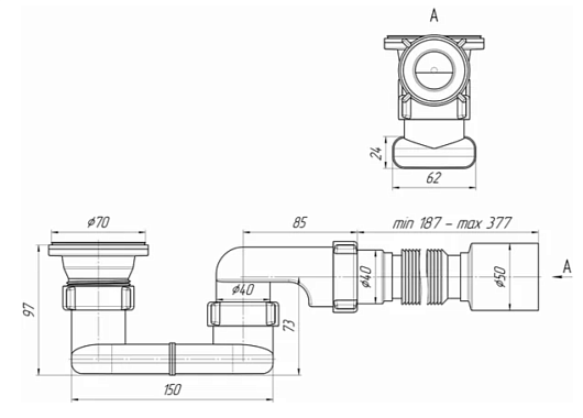 АНИ пласт Сифон для душевого поддона плоский 1 1/2"х40 с гт 40x50 (Е015)