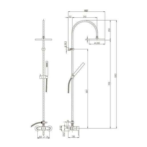 Paini Система душевая Arena 92CR6891P1 хром