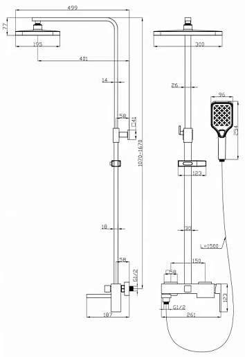Esbano Система душевая Celine (DS-XR) 107/167/26 хром глянцевый