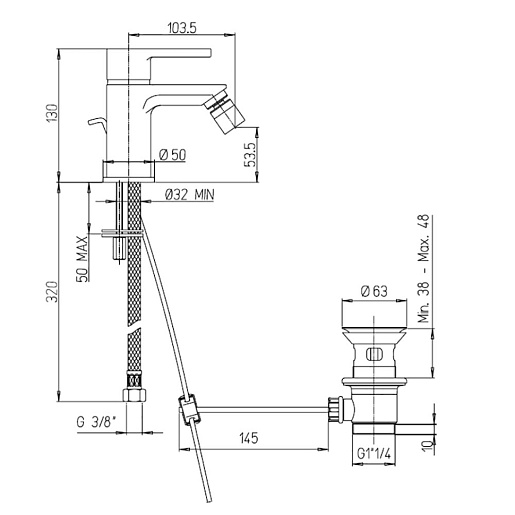 Cezares Смеситель для биде 92CR3062SFTKM с д/к, хром