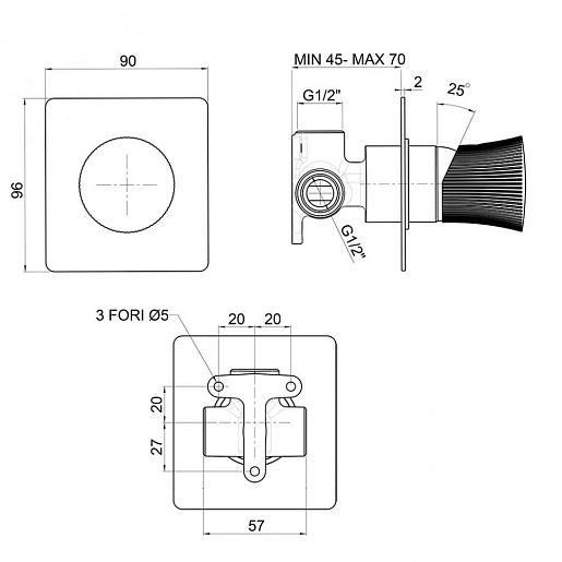Paini Смеситель для душа Domus 18CR690PZ встраиваемый, хром/брашированный чёрный