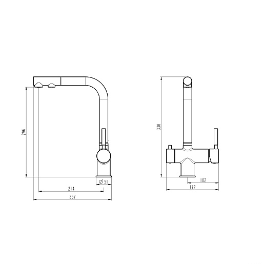 - Подача питьевой воды-через совмещенный излив.