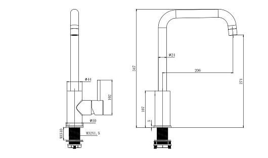- Длина излива: 20.6 см.
