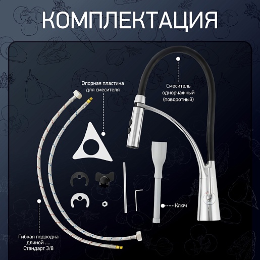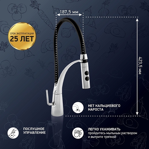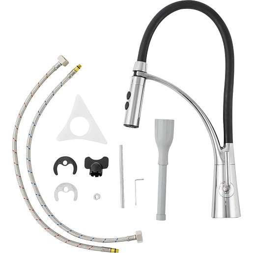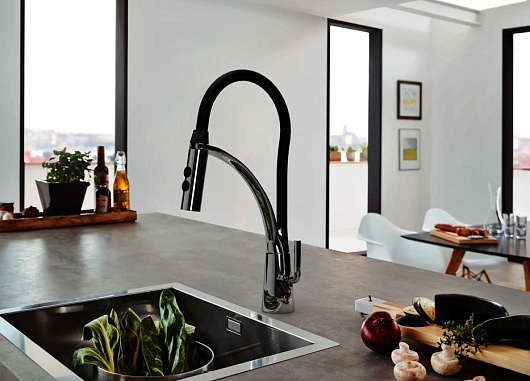 - Смеситель для кухни PAINI Barolo гибкий, хром/черный.