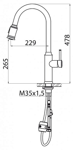 - Дополнительная информация: выдвижная лейка с переключателем аэратор/душевая струя, поворотный излив.