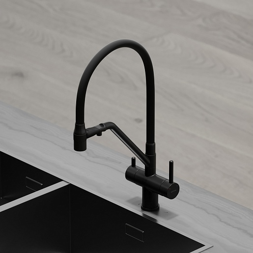 - Гибкий излив более маневренный, чем обычный, и позволяет настроить высоту и угол излива под любые нужды.